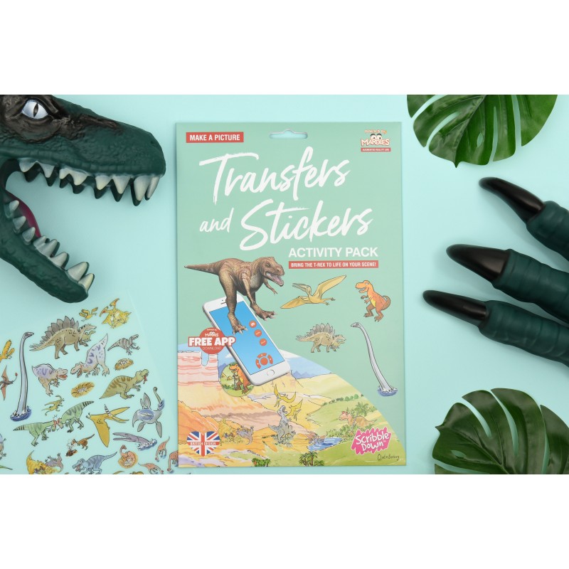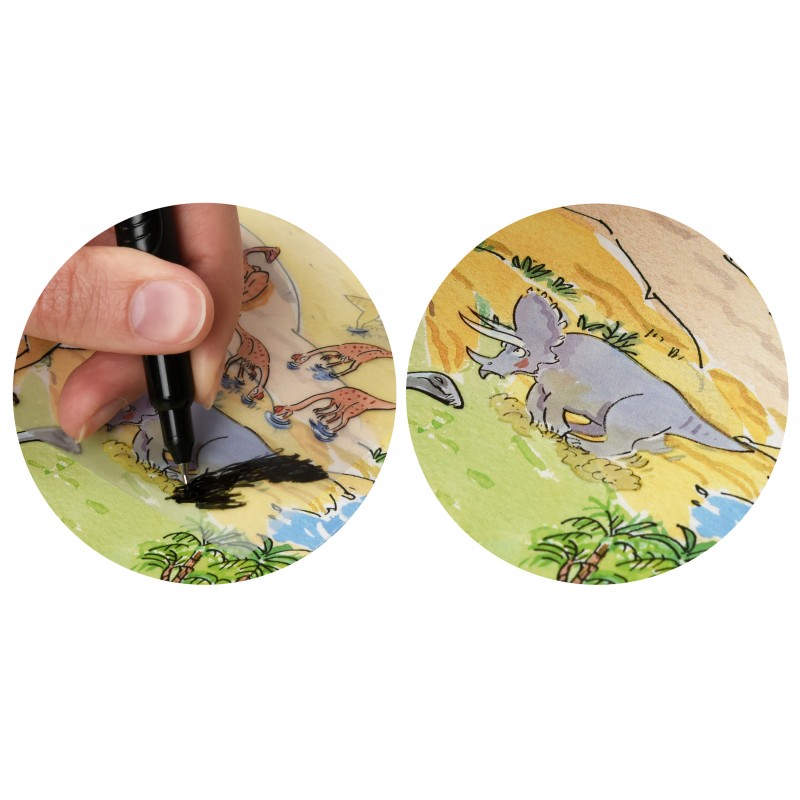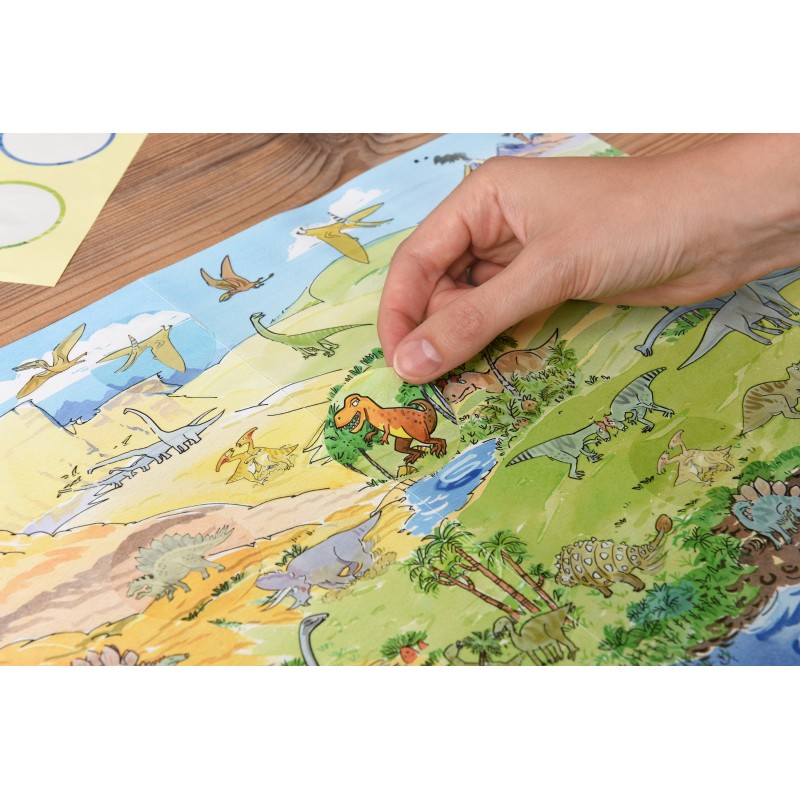 А3; лист А4 з набором тематичних перевідних картинок; наклейки, що світяться 6 шт; наклейки динозавра 3 шт; листівка-розмальовка А4.