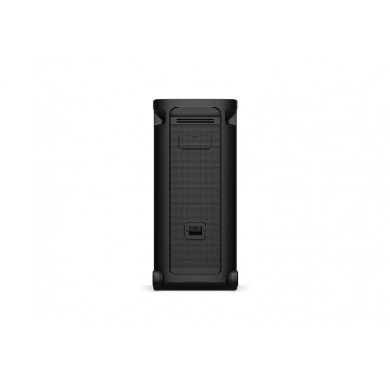 Зручна ручка і стабільні коліщатка спрощують транспортування акустичної системи. І не хвилюйтеся: верхня панель захищена від бризок, тож пристрій сміливо можна використовувати на вечірці, не боячись потрапляння крапель.