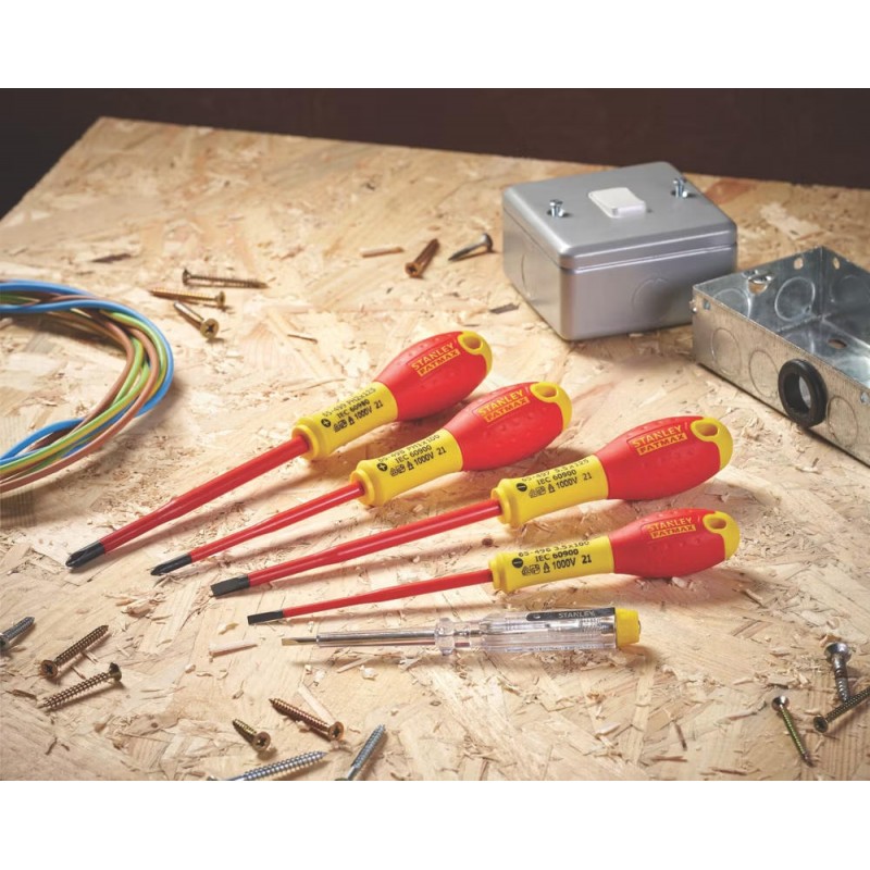 Stanley Викрутка FatMax набір 7шт, для робіт під напругою 1000В, прямий шліц 3.5х75мм/ 5.5х150мм, викрутки під шліц Philips Ph1x100/ Ph2x125
