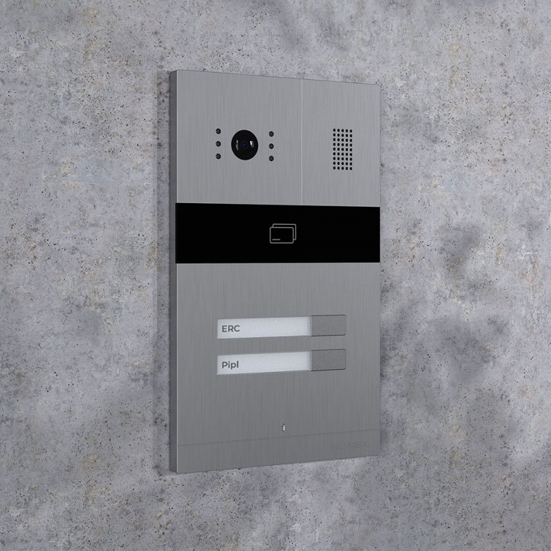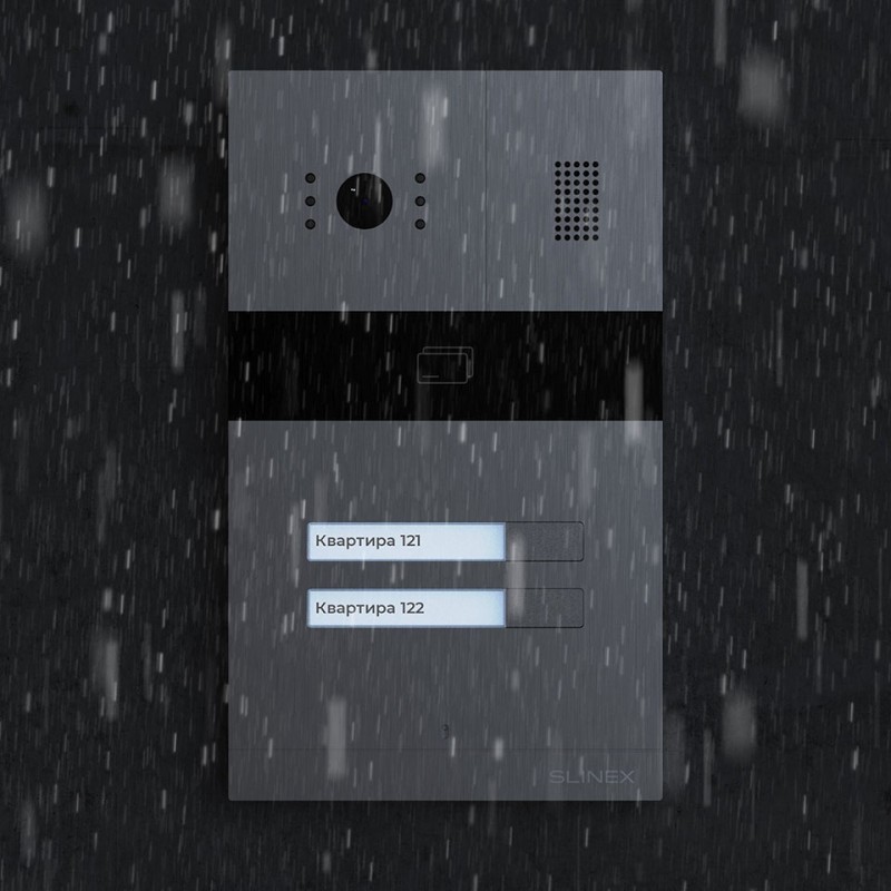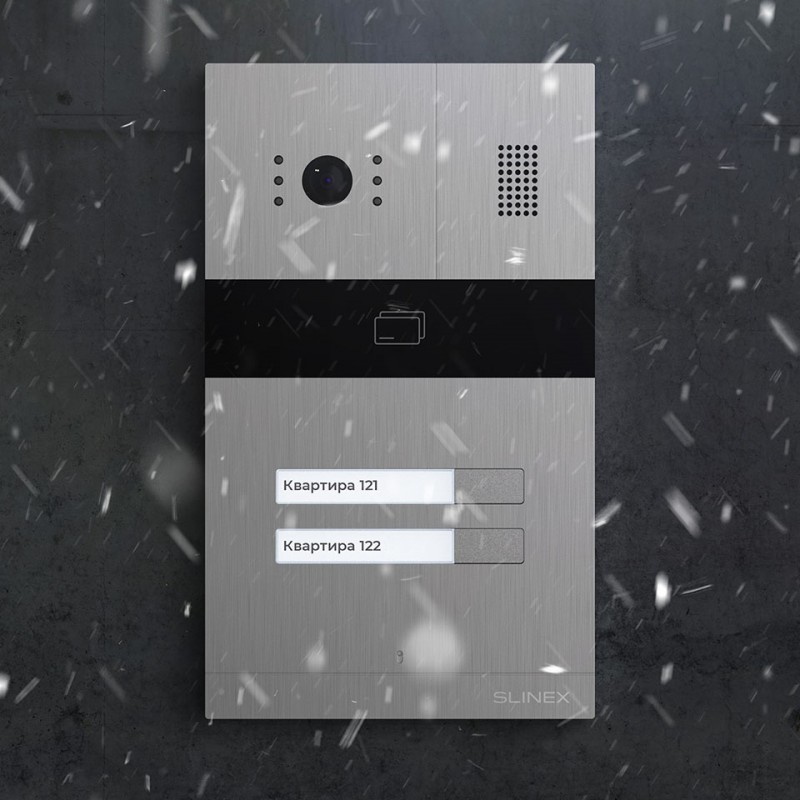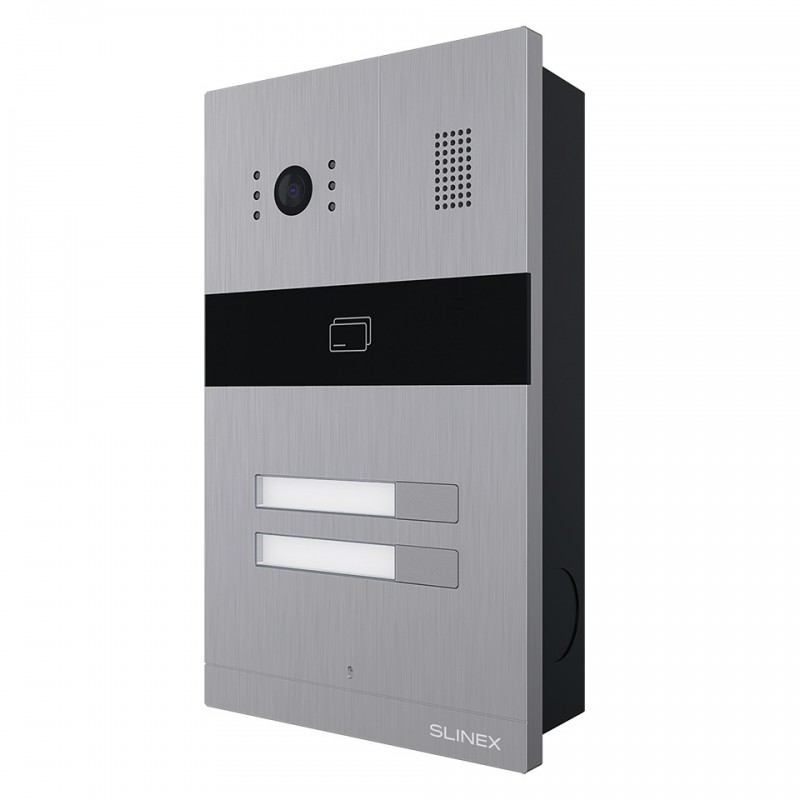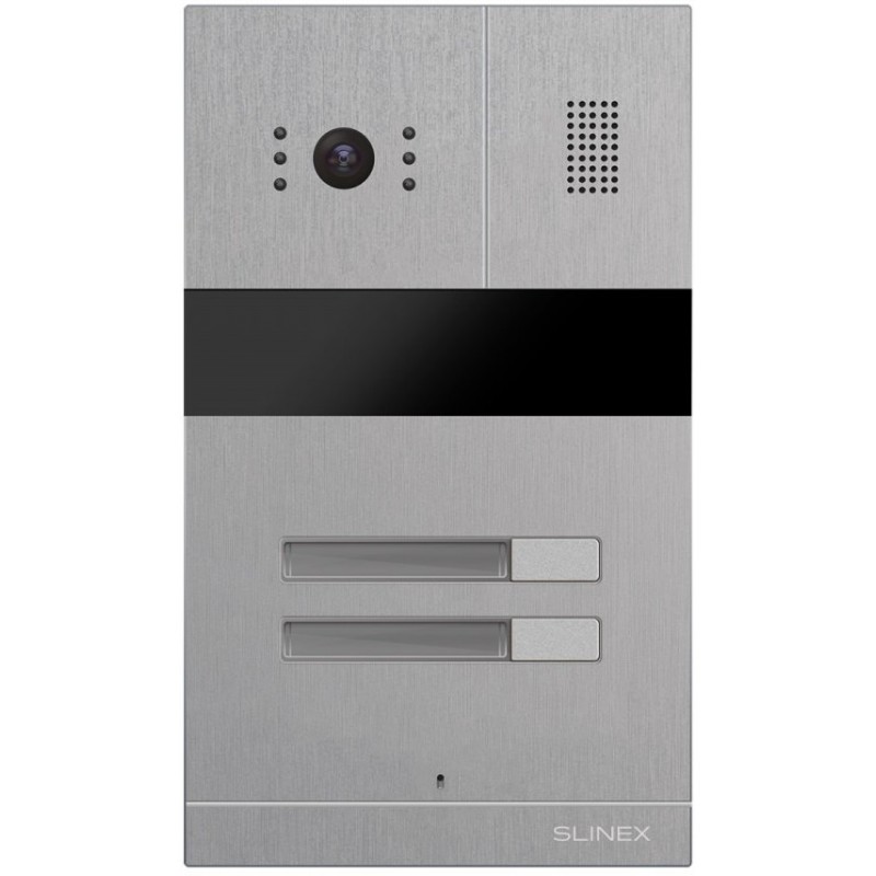 Slinex MA-02 – це панель виклику на 2 абонента в ультрасучасному дизайні. Панель має безліч переваг, серед яких: кольорова CMOS камера з роздільною здатністю 960 ТВЛ, вбудований комбінований зчитувач безконтактних карт EM-Marin, Mifare/NFC, механічний інфрачервоний фільтр на 6 світлодіодів та підсвічування іменних табличок.