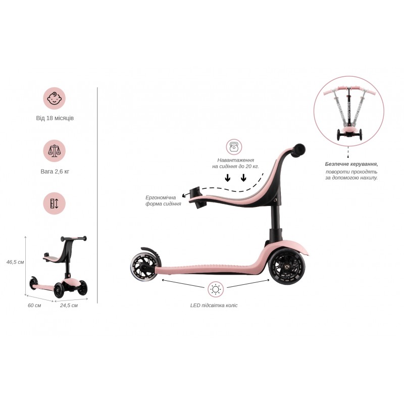 3-х колісна компоновка забезпечує стійкість і простоту катання навіть для найменших дітей.