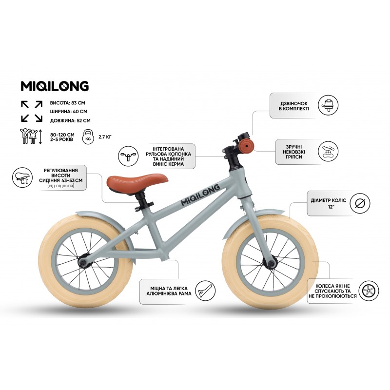 Особливості висота сидіння регулюється, в комплектацію входить дзвіночок та бризковики
