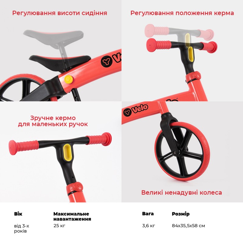 • Регульовані по висоті кермо та сидіння, щоб «зростати разом з дитиною».