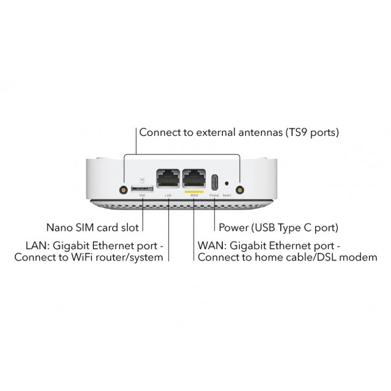 • Миттєвий доступ до LTE Інтернету — підключіть активну карту Nano SIM від постачальника послуг і миттєво отримайте доступ до мережі LTE в якості основного підключення для вашого дому або бізнесу.