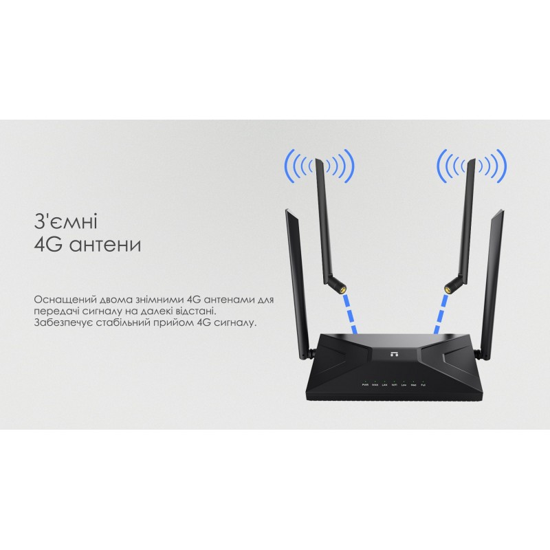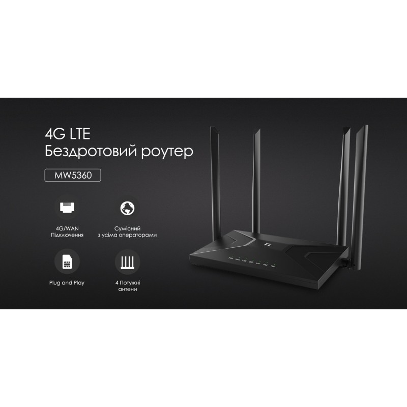 Netis Маршрутизатор MW5360 N300, 4G LTE 1xSIM card slot, 2xFE LAN, 1xFE WAN, 4x зовнішн. ант.