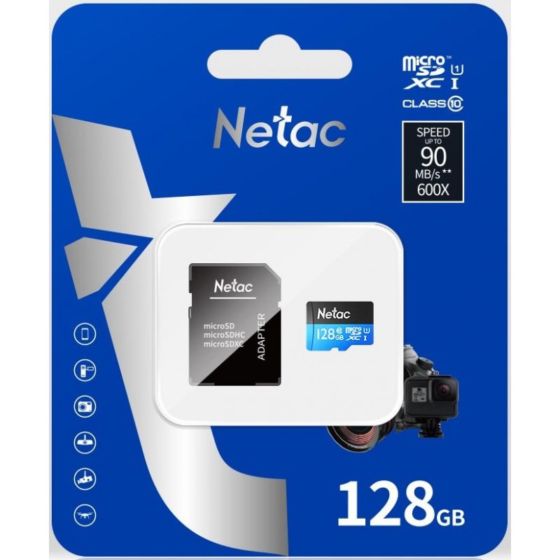 Netac Карта пам'яті microSD 128GB C10 UHS-I R80MB/s + SD