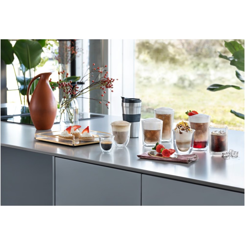 Завдяки функції To-Go ви можете брати каву із собою на прогулянки та у поїздки прямо з дому. Три основні розміри кавових напоїв на вибір — і вперед до нових вершин! Термочашка входить в комплект.