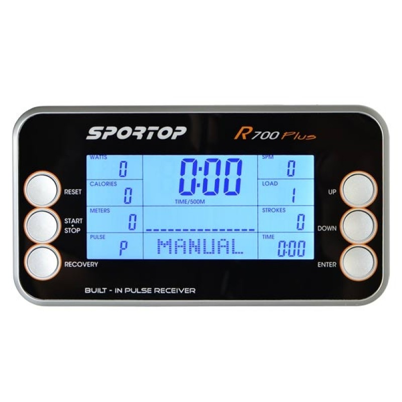 Гребний тренажер Sportop R700 plus-професійний гребний тренажер для комерційного застосування. Може експлуатуватися у фітнес-центрах, фітнес-клубах, для групових занять, для тренування спортсменів-веслярів в міжсезоння.