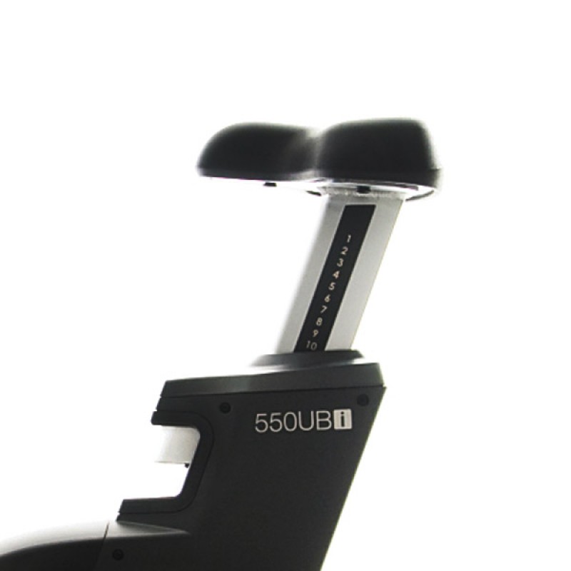 Клієнти часто користуються функцією Quick Start, не бажаючи вивчати послідовності клавіш для доступу до складних тренувальних опцій. Вертикальний велотренажер 550Ubi Interactive має унікальну функцію Uni-Jog Control™, яка дозволяє одним натисканням уникнути плутанини з клавішами. Коли користувачі усвідомлюють, що всі налаштування легко виконуються за допомогою поворотної ручки (потрібно просто повернути і натиснути), вони можуть без проблем управляти всіма функціями, які покликані зробити їх тренування приємніше і ефективніше.