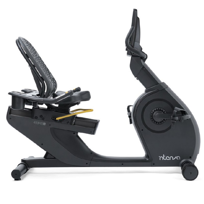 горизонтальний велотренажер Intenza 450rbi2 - нова модель професійного велотренажера топової лінії комерційних кардіотренажерів Intenza серії 450 з новими консолями 450 i2 і 450 i2S, що об'єднали мінімалізм, технологічні інновації, преміум-якість і зручність інтерфейсу, продумане до найдрібніших деталей. Крім того, нові консолі мають підвищену пило - і вологозахистом.