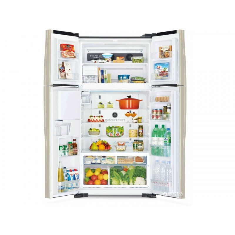 Hitachi Холодильник з верхн. мороз., 184x86х75, холод.відд.-396л, мороз.відд.-144л, 4дв., А+, NF, інв., зона нульова, диспенсер, бежевий (скло)