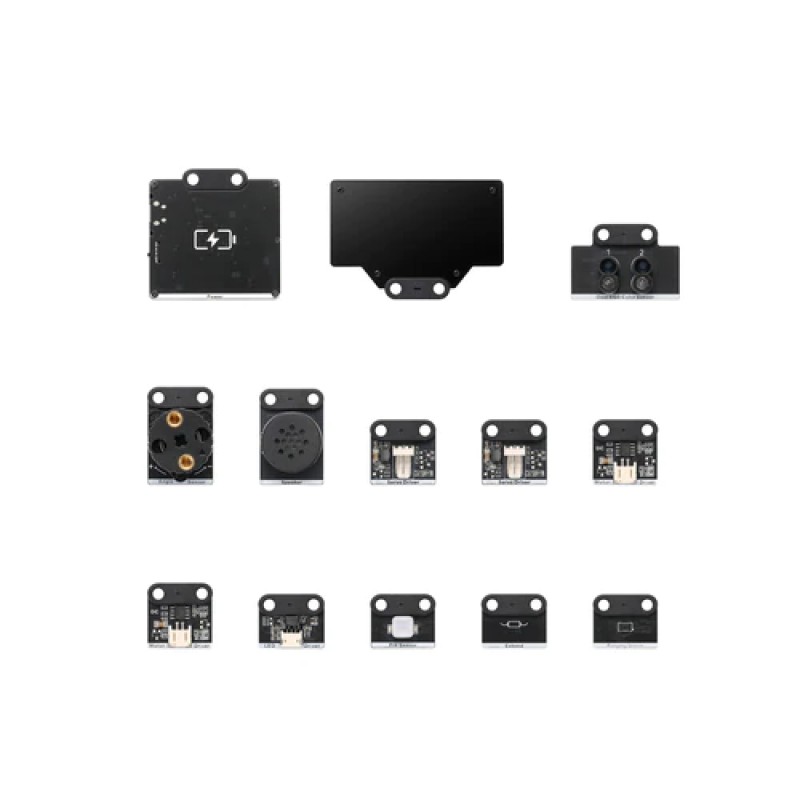 Micro-USB кабель, 1 × Викрутка, 1 × Світлодіодна матриця, 1 x Динамік, 1 x Модуль живлення, 2 x Драйвер мотора, 1 x LED драйвер, 1 x Блок розширення, 2 x LED кільце , 4 x Латунна шпилька М4х32, 4 x Велика заклепка, 2 x Серво драйвер, 1 x Подвійний RGB датчик кольору, 1 x Кутовий датчик, 2 x Серво, 2 х Мотор, 1 × Датчик дальності, 1 × ІЧ-датчик, 2 × Світлодіодна стрічка, 12 × M3 * 14 хрестовий гвинт, 1 × Набір з вентилятором, 8 × M3 * 20 хрестовий гвинт, 1 × M5 M7 двосторонній ключ, 5 х з'єднувальний кабель 5 В (10 см), 10 х з'єднувальний кабель 5 В (20 см), 35 × M4 адаптер, 20 × M4 * 14 гвинт, 20 × гайка М4, 10 × M4 контргайка, 20 × M3 * 12 латунний цвяшок, 1 × Наждачний папір, 8 × R4100 Заклепка, 30 × гумове кільце |