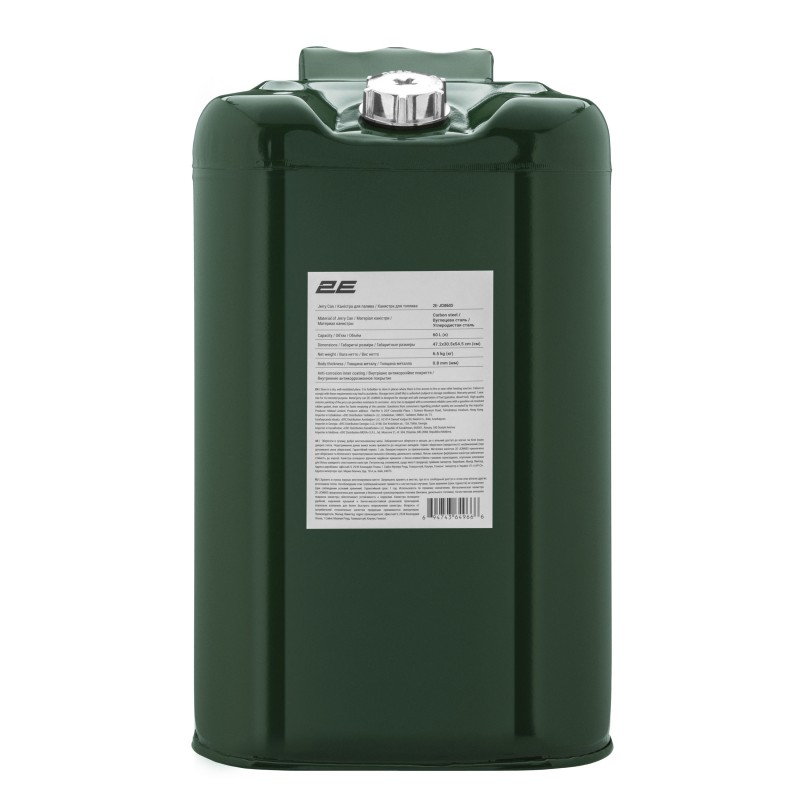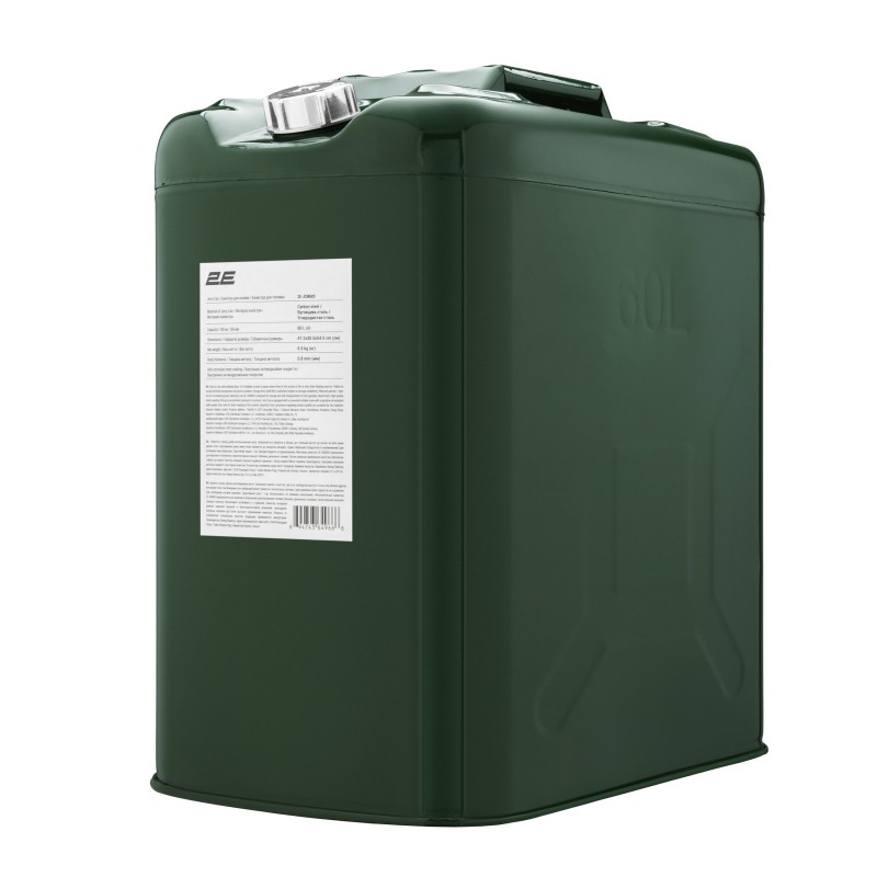 Каністру 2E-JCM60S виготовлено з вуглецевої сталі завтовшки 0,8 мм, зумовлюючи її міцність і гарний вигляд. Аби корпус не деформувався під час жорсткої фіксації, на його стінках передбачено ребра жорсткості. Завдяки протикорозійній обробці та шару бензостійкої фарби каністра слугуватиме тривалий період.