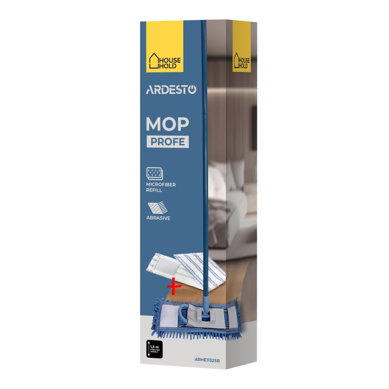 Швабра Ardesto Profe 40см з 3-секційною ручкою 130см та 2 змінні насадки, синій