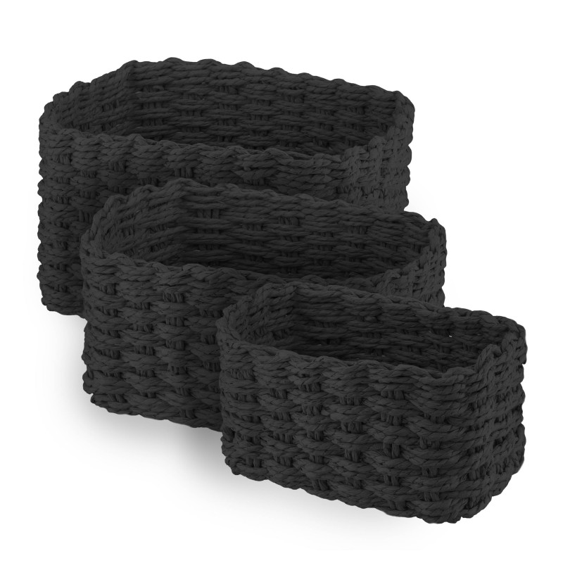 Набір кошиків плетених для зберігання Ardesto Prestigio (3.3/2.2/1.4л), 3 предмети, паперовий шпагат, чорний