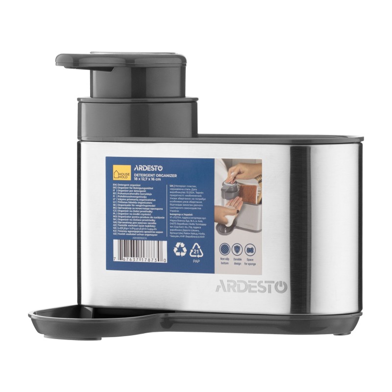 ARDESTO Органайзер для миючих засобів Ardesto, 8х12.7х16см, пластик, нержавіюча сталь, сірий