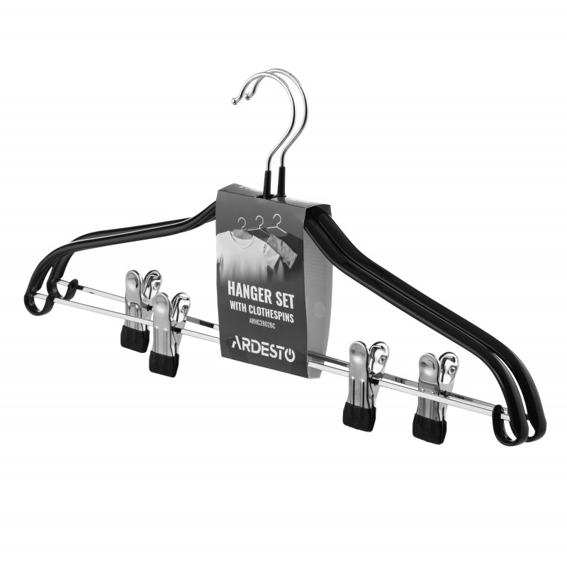 ARDESTO Набір вішаків з прищіпками 42см, 2шт, метал, ПВХ, чорний