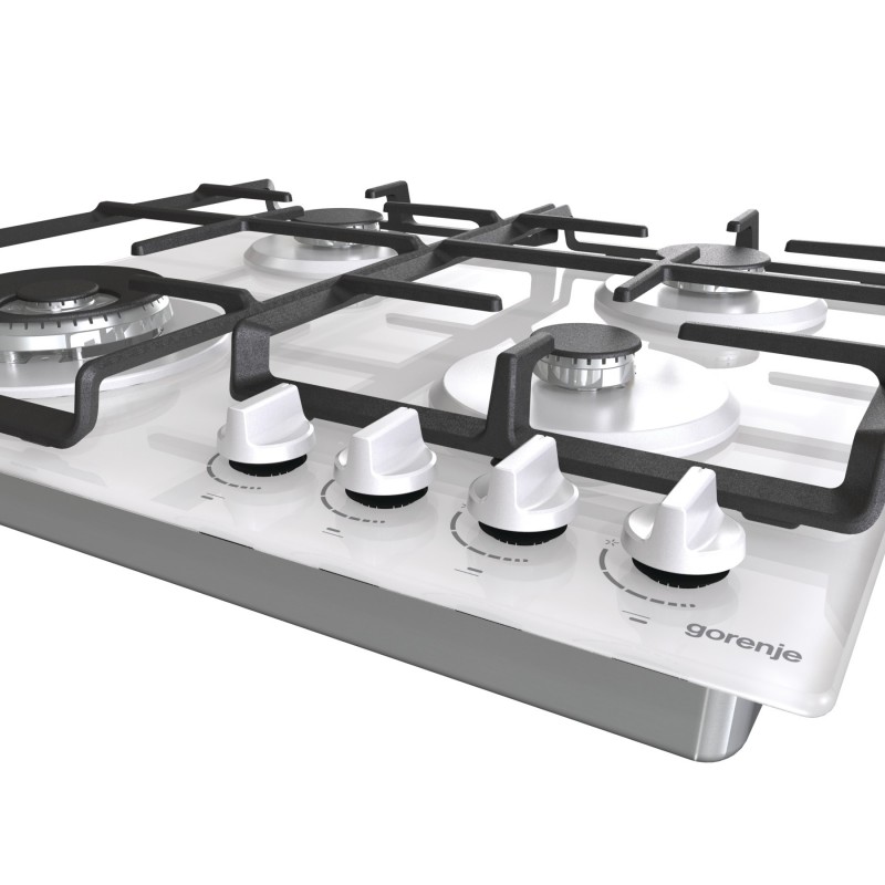 Gorenje Варильна поверхня газова на склі, 60см, чавун, білий