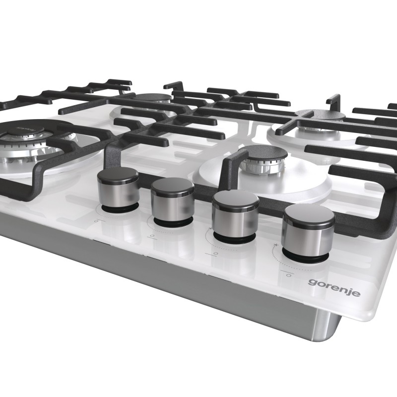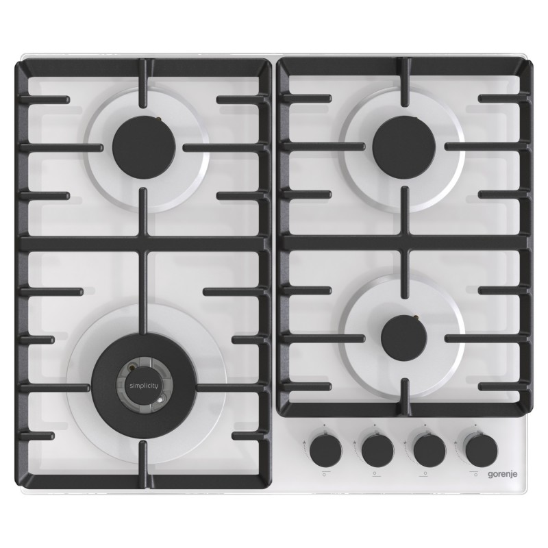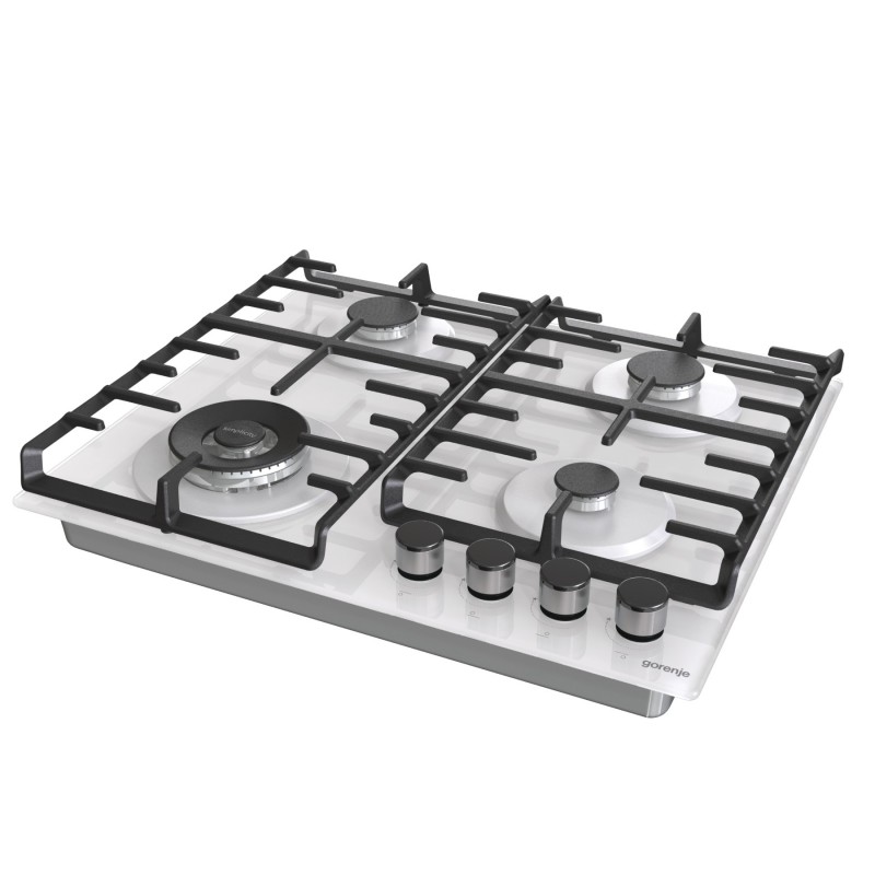 Gorenje Варильна поверхня газова на склі, 60см, чавун, білий