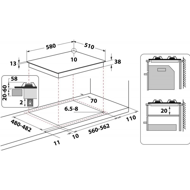 Whirlpool Варочная поверхность газовая, 60см TKRL661NB