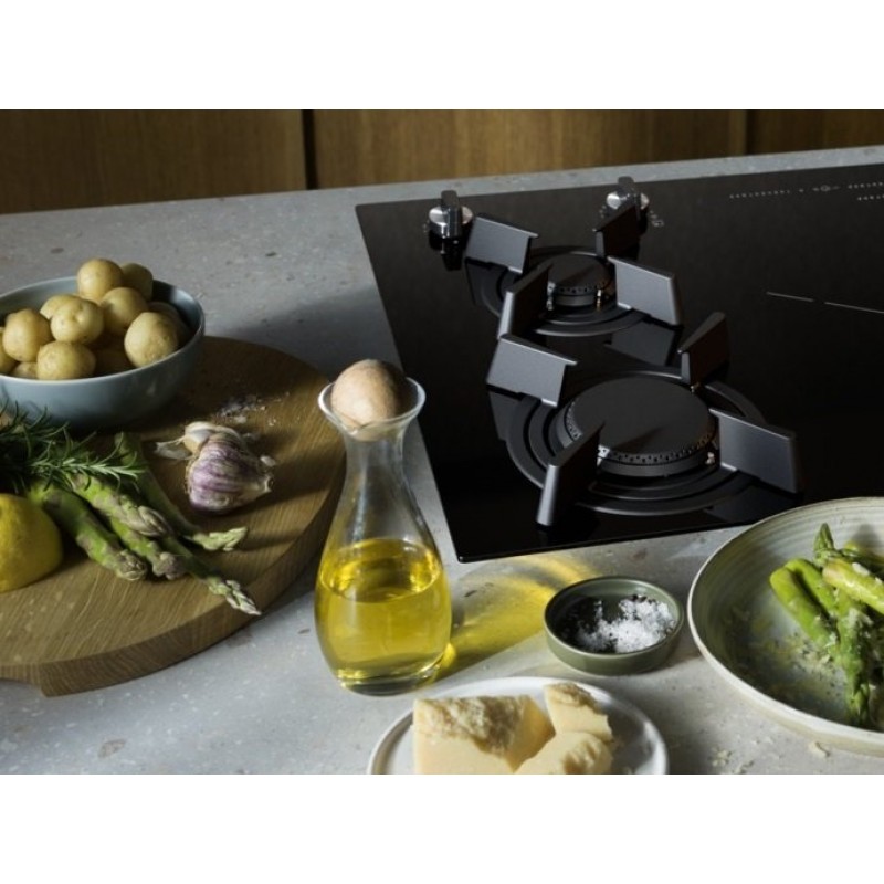 Чорні матові конфорки з вертикальним полум'ям можна мити в посудомийній машині та економити до 20% енергії за рахунок швидшого нагрівання. Точне полум'я нагріває тільки ту сковороду, яку використовуєте, для більшої ефективності.