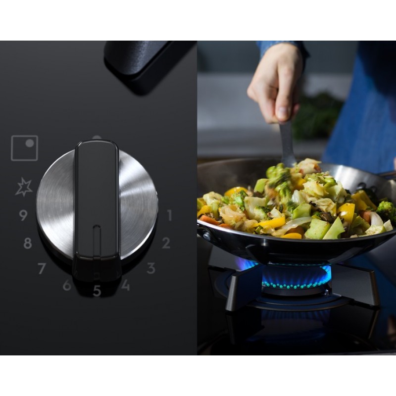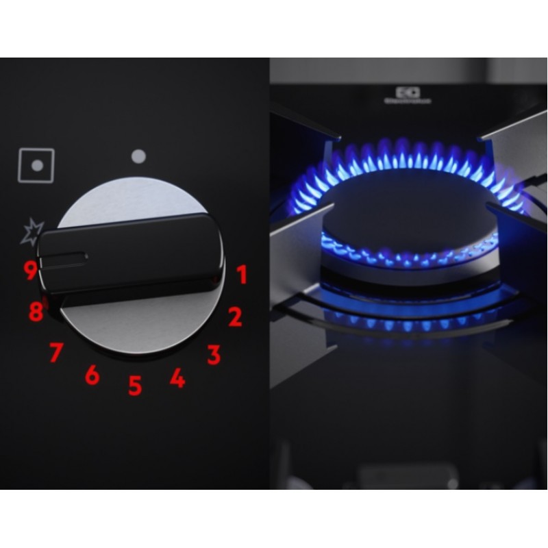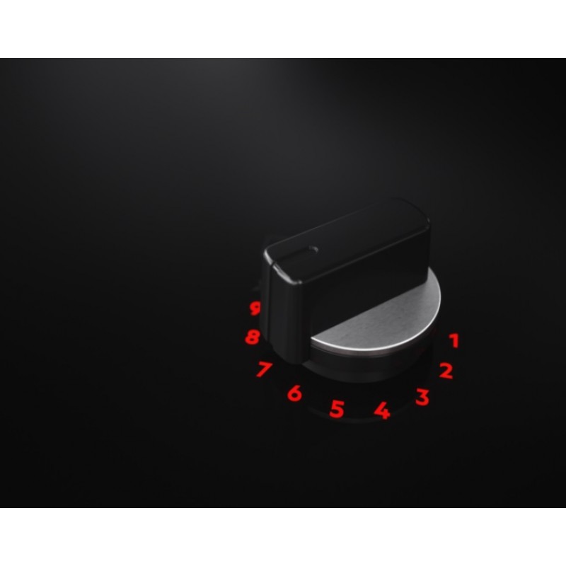 Контролюйте рівень потужності за допомогою яскравих світлодіодний індикаторів FlameLight. Їхня яскравість дозволяє легко бачити та вибирати рівень інтенсивності полум'я від 1 до 9. FlameLight також дозволяє дізнатися, коли конфорка вимкнена або увімкнена.