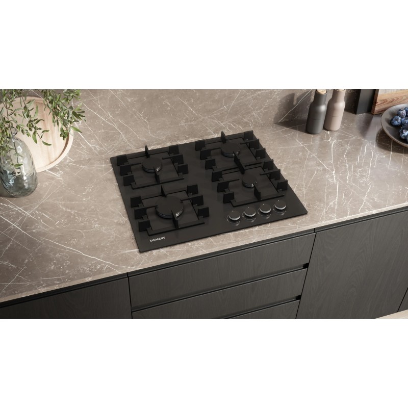 Siemens Варильна поверхня газова на склі, 60см, чавун, чорний