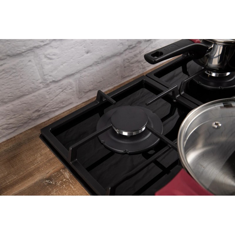 Тільки верхня частина пальника знаходиться над скляною поверхнею газової плити. Це значно покращує дизайн та полегшує догляд за пристроєм.