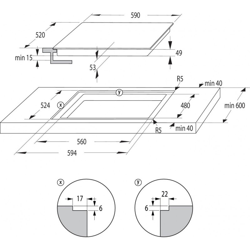 Розміри для вбудовування 56-56.4 × 3 × 48