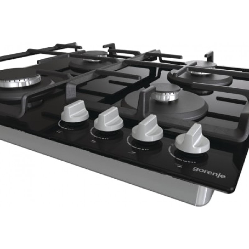 Варильна поверхня Gorenje газова на склі, 60см, чавун, чорний