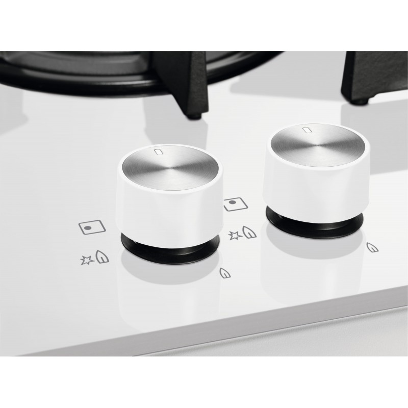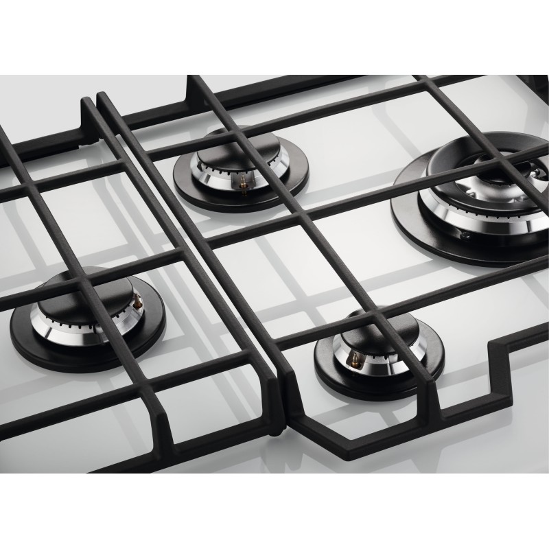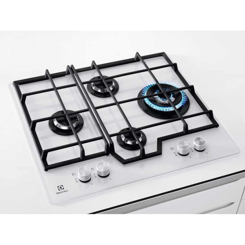 Electrolux GME363NV — це сучасна газова варильна поверхня, що поєднує в собі елегантність скла та потужність відкритого вогню.