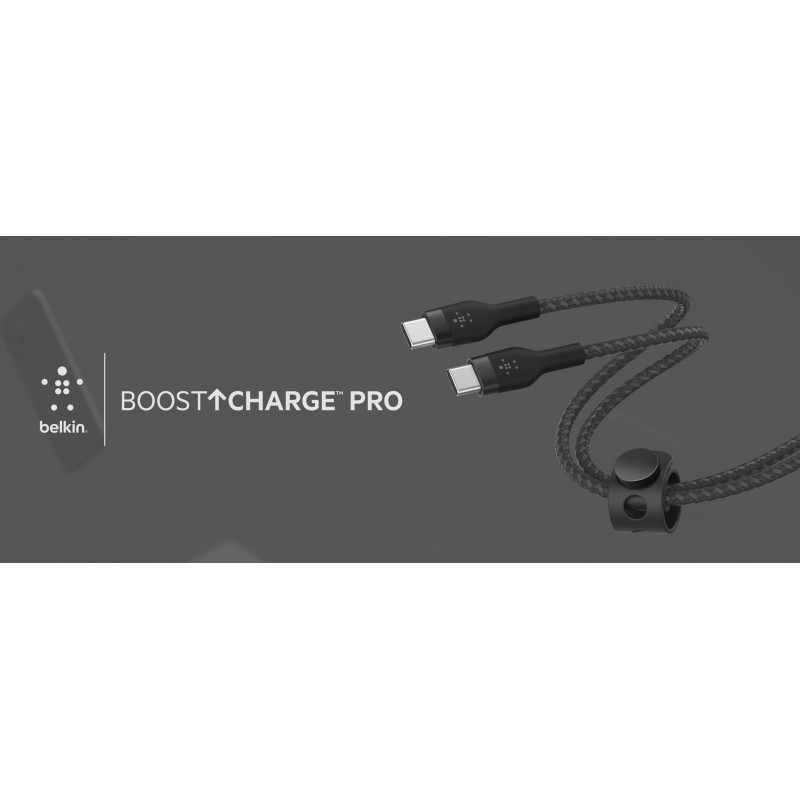 Belkin Кабель USB-С - USB-C плетений, силіконовий, з ремінцем на магніті, 1м, чорний