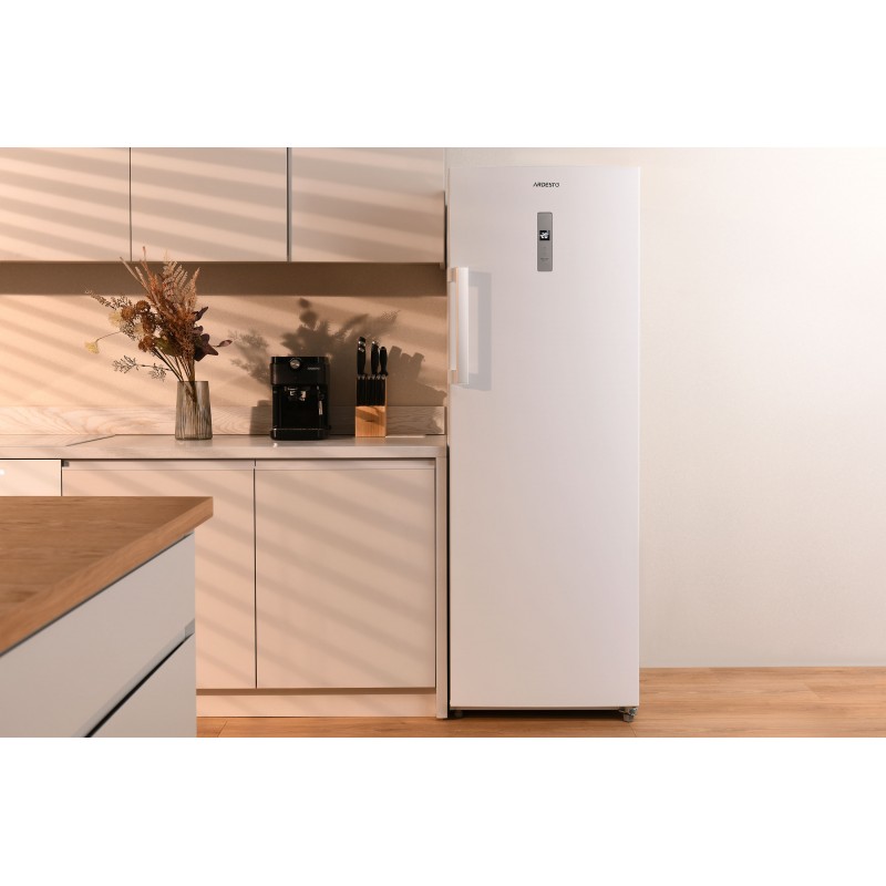 Загальний об’єм Ardesto URM-N227E172 – 261 л, де корисний об’єм дорівнює 238 л. Ручка для відкриття – зовнішня, знімна. 7 полиць для зберігання продуктів. Транспортування по рівній поверхні забезпечують коліщатка, а для надійної установки передбачена опорна ніжка з функцією регулювання висоти.