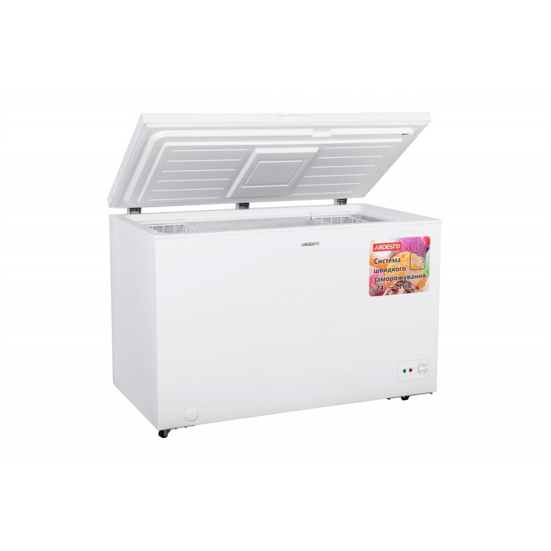 FRM-362MCH – найбільша модель в лінійці морозильних камер ARDESTO з механічним керуванням. Висота морозильної камери – 82,5 см, ширина – 125,5 см, а вага становить 47 кг. Це оптимальний розмір для великих домогосподарств, магазинів, кафе тощо. Повне відкриття кришки дає змогу легко контролювати внутрішній простір камери.