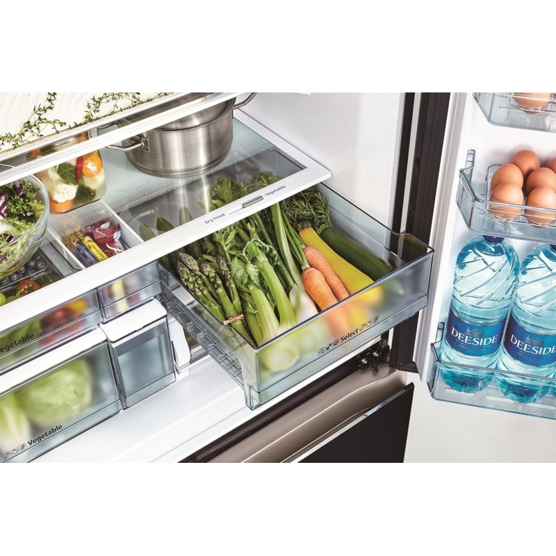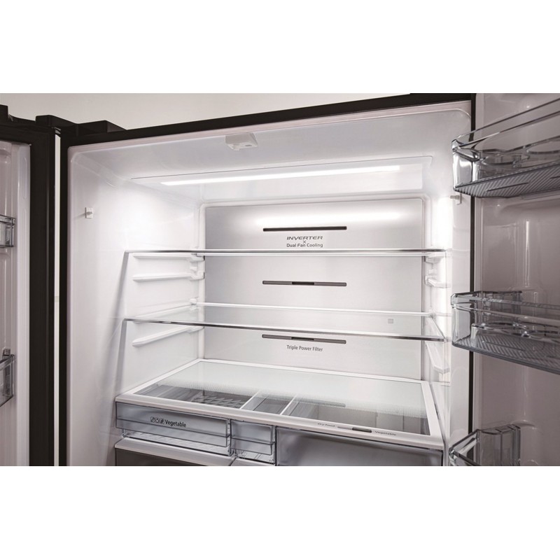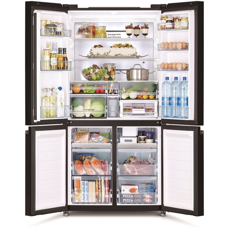 Hitachi Холодильник з нижн. мороз., 184x90х72, холод.відд.-372л, мороз.відд.-196л, 4дв., А+, NF, інв., зона нульова, вакуум, льодоген., чорний (скло)