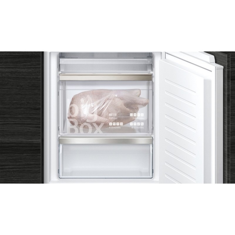 Внутрішній простір морозильних камер холодильників Siemens може підлаштовуватися під ваші потреби. Так, ви можете вийняти усі контейнери та полички, щоб звільнити місце для дуже об’ємних продуктів, наприклад, для цілого лосося чи індички.