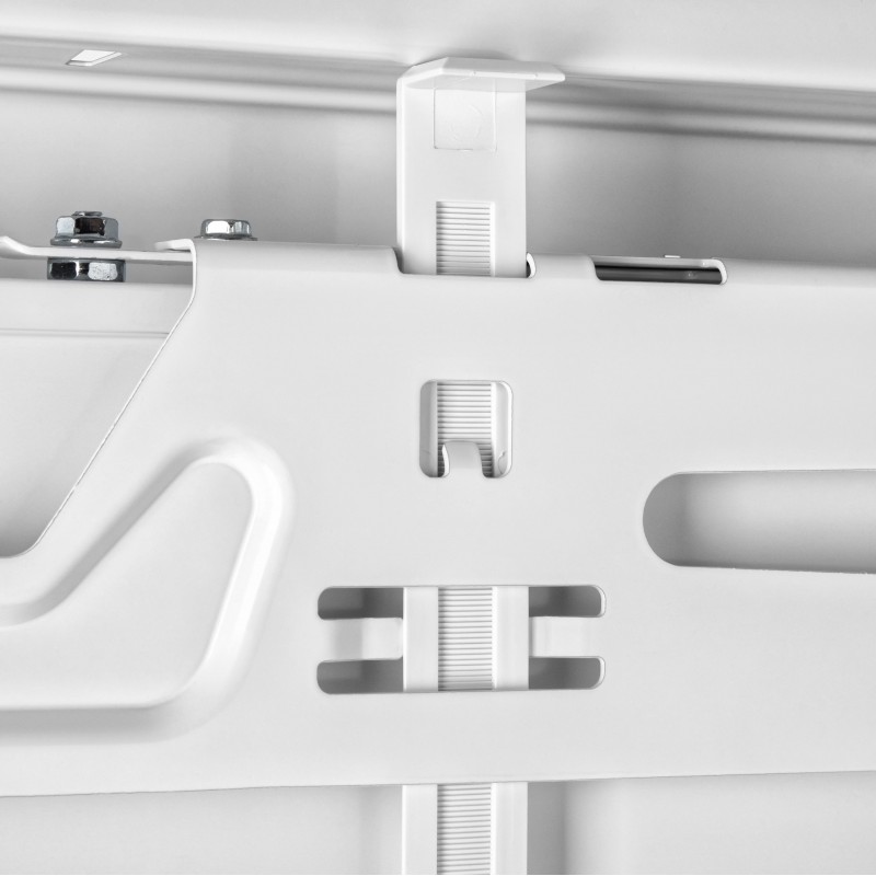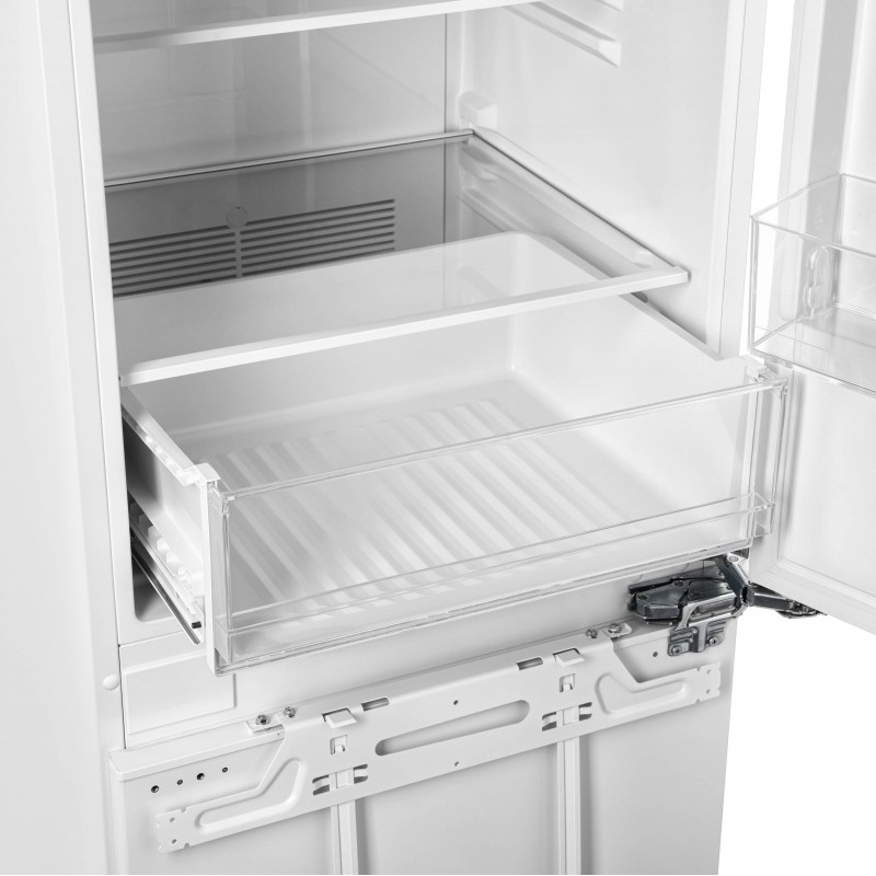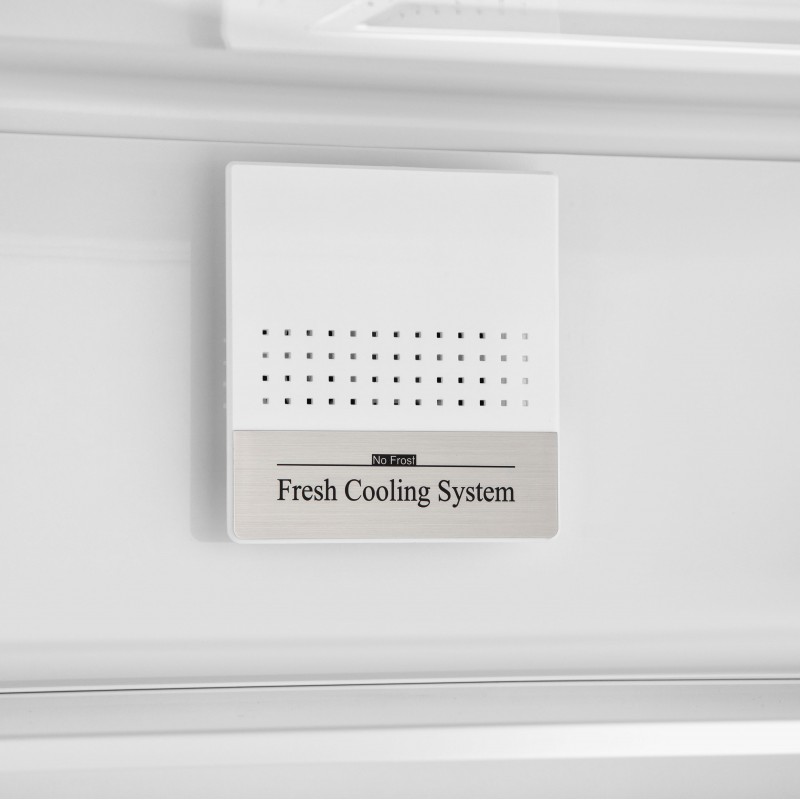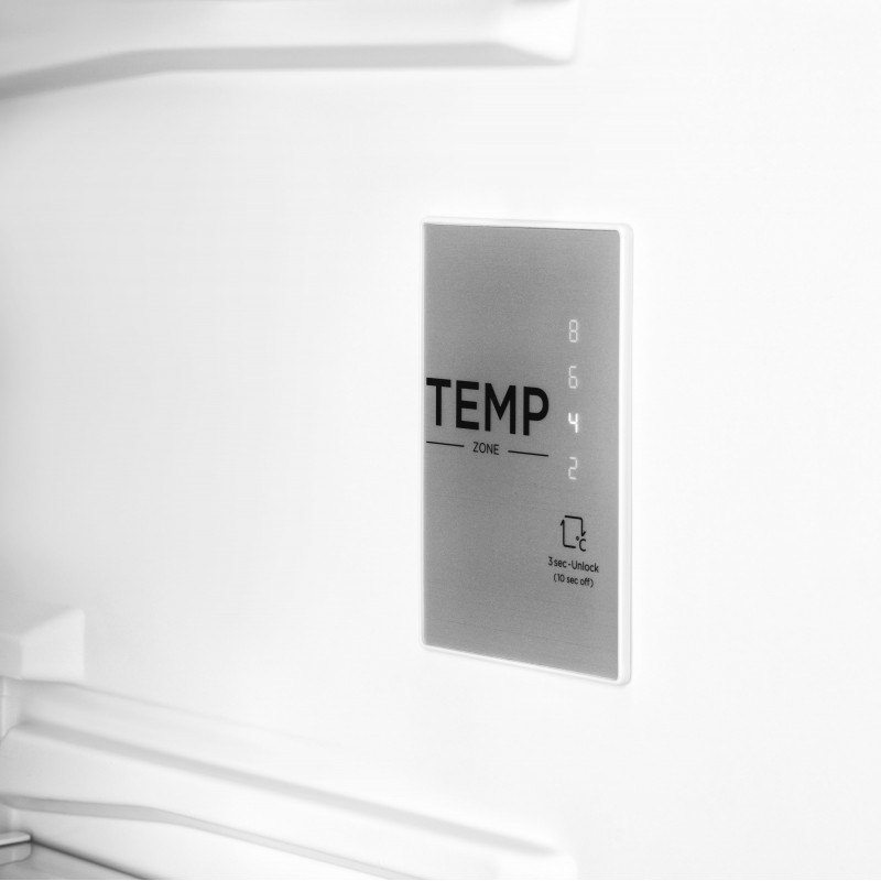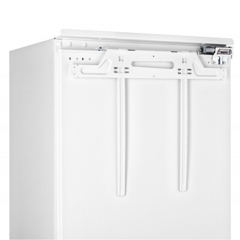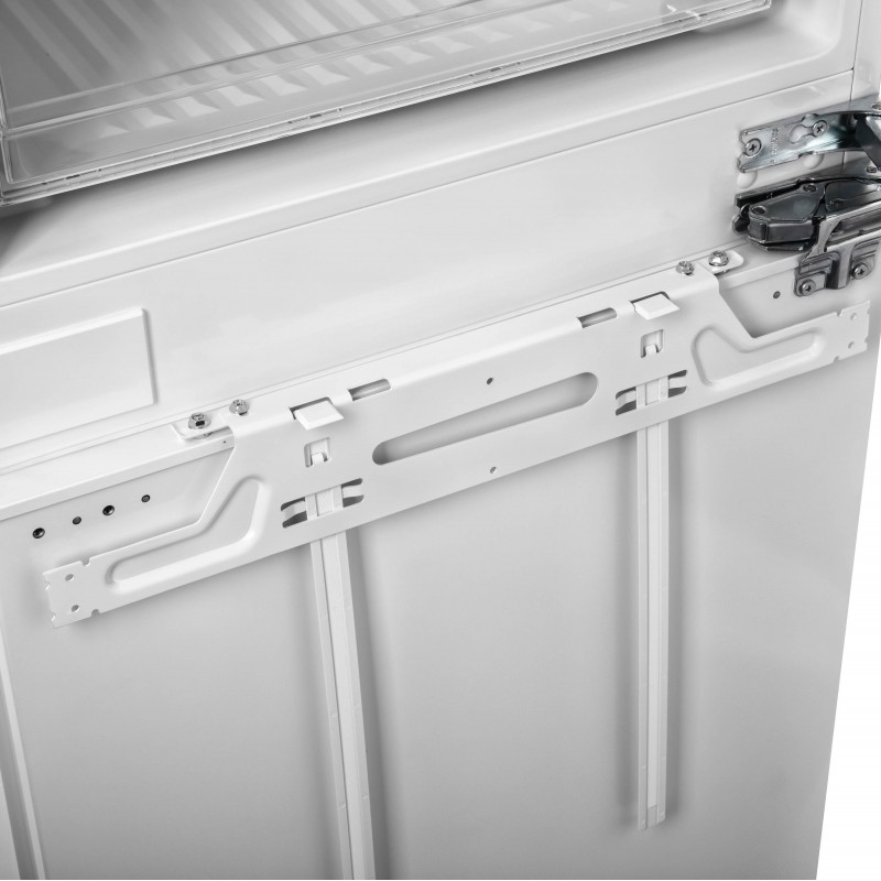 Конструкцією передбачено жорстке кріплення фасаду (door-on-door), що гарантує безпечне й надійне встановлення холодильника. Крім того, можливість перевішування дверцят дає змогу адаптувати модель відповідно до будь-якого дизайну кухні.