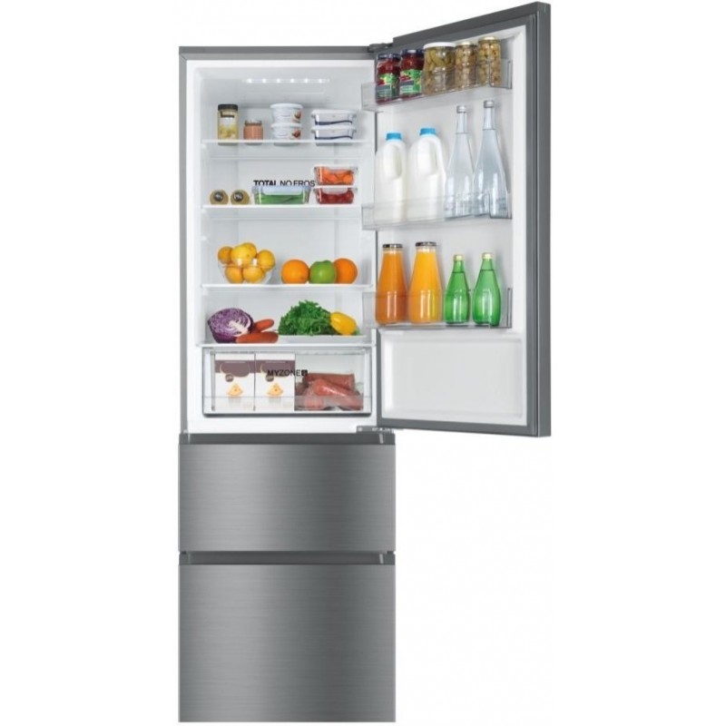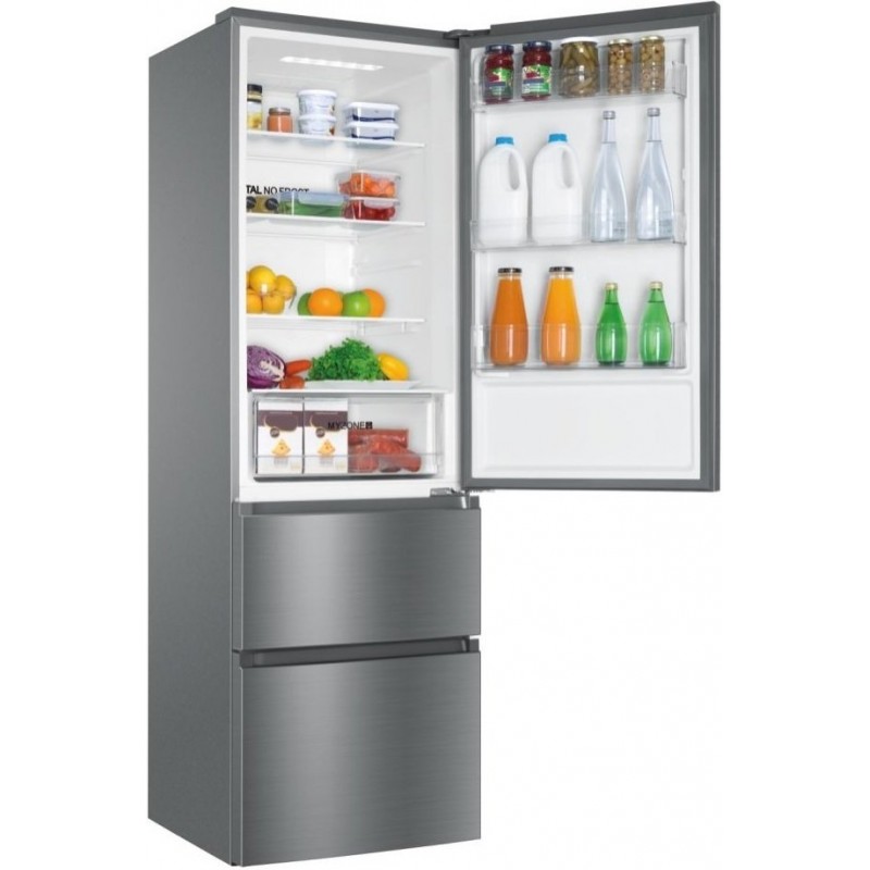 Haier Холодильник багатодверний, 190.5x59.5х65.7, холод.відд.-233л, мороз.відд.-114л, 3дв., А++, NF, інв., дисплей, зона нульова, сріблястий