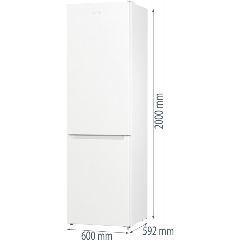 Gorenje Холодильник з нижн. мороз. камерою, 200х60х60см, 2 двері, 235(96)л, А++, NoFrost+, Зона св-ті, білий