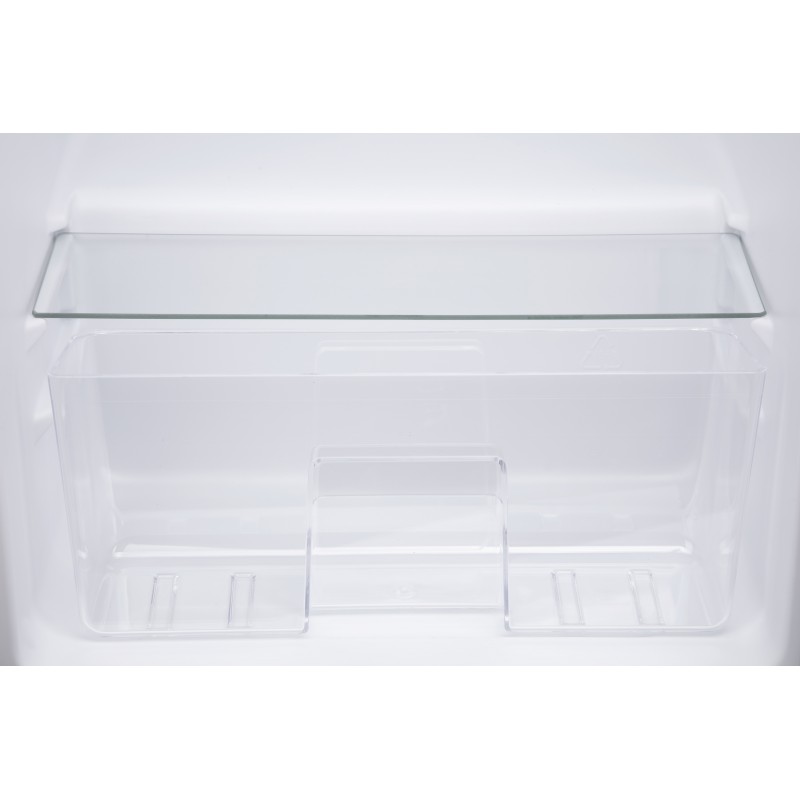 Є відділення для овочів/фруктів, три основні полиці, три бокові полиці для різних баночок та напоїв, а також лоток для яєць.