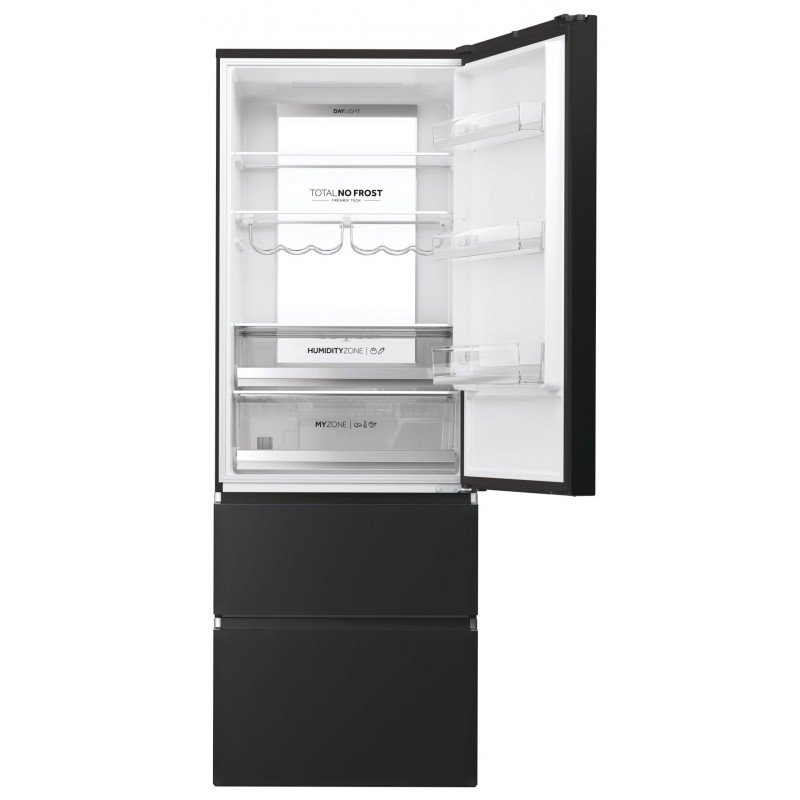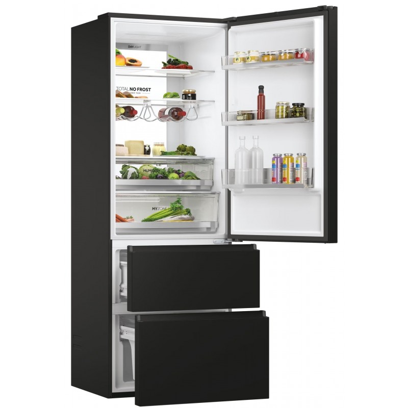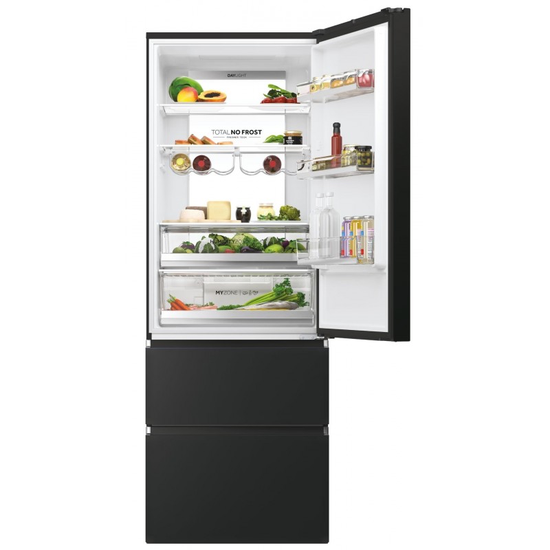 MyZone - це результат прагнення Haier до постійного вдосконалення, інновацій та передбачення очікувань клієнтів. Високотехнологічна шухляда My Zone Plus, оснащена рятівною технологією Fresher Techs, дозволяє створити оптимальні умови для продуктів, що зберігаються в ній, одним натисканням кнопки. Залежно від ваших поточних потреб, ви можете встановити температуру в шухляді від -1°C до +3°C. Діапазон від -1°C до 0°C ідеально підходить для м'яса, від +1°C до +2°C - для овочів, а +3°C - найкраща температура для фруктів.