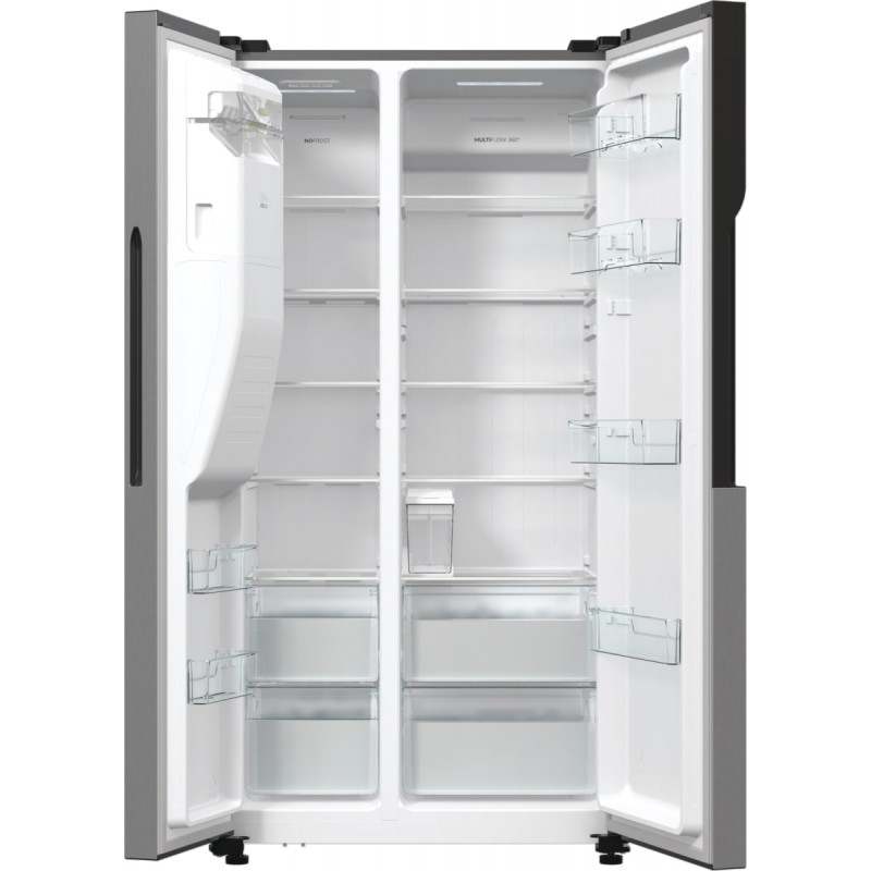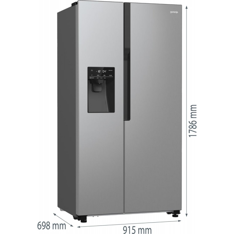 Gorenje Холодильник SBS, 179х70х92см, 2 двері, 376(190)л, А++, NF+, Інв., Зона св-ті, диспенсер, генератор льоду, Зовн. Диспл, нерж