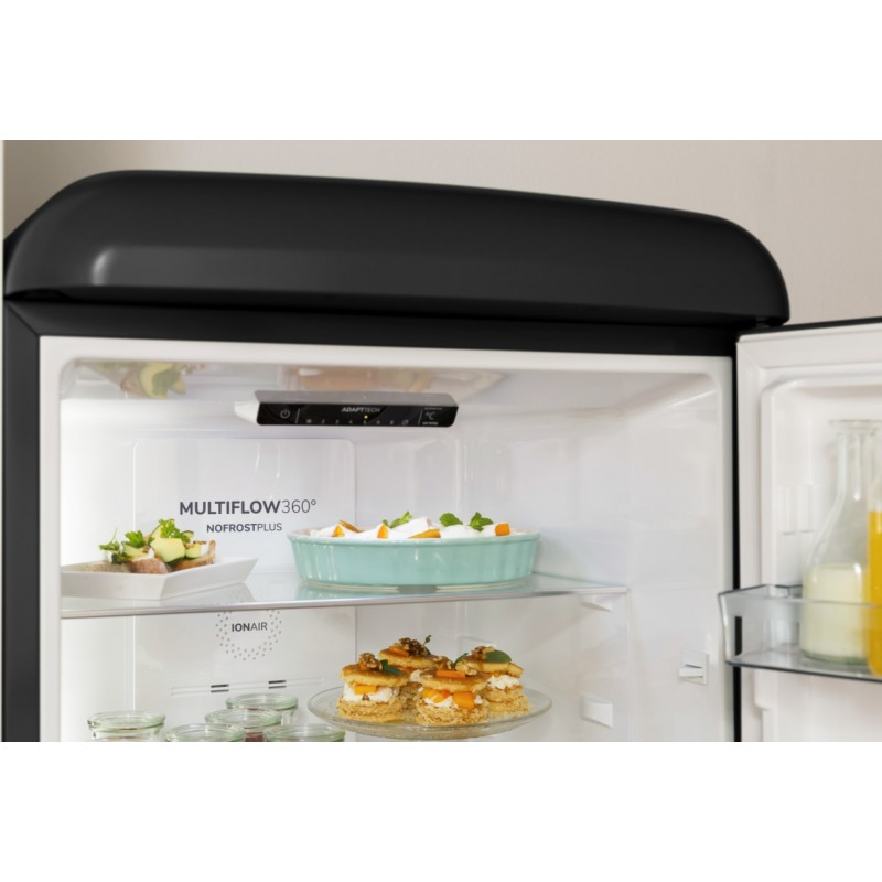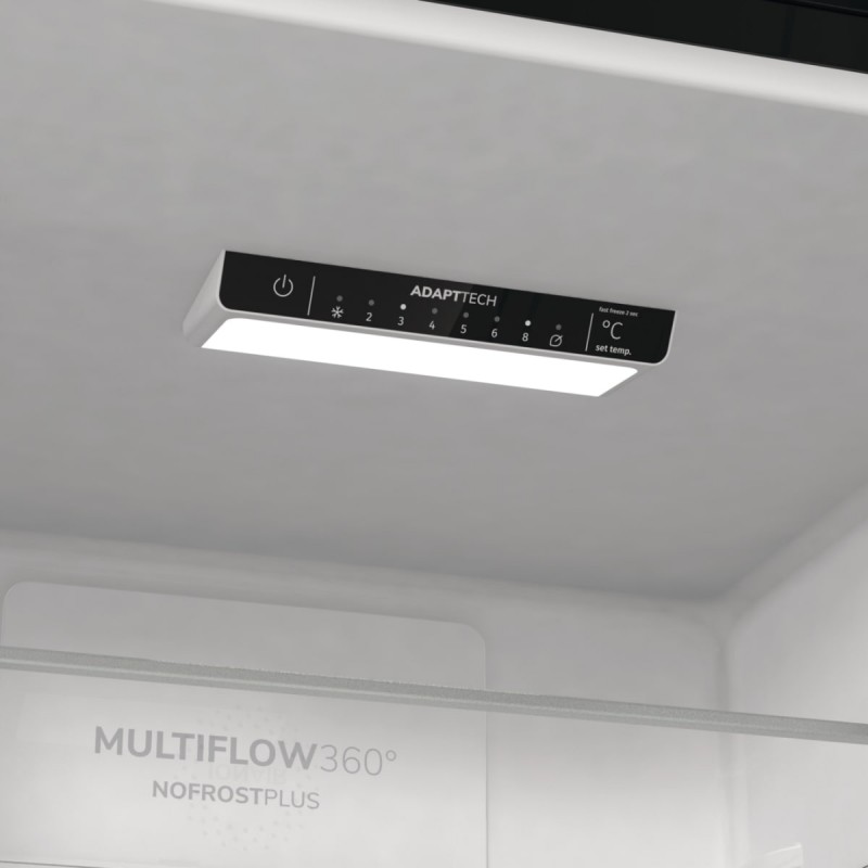 Система NoFrost Plus забезпечує автоматичне розморожування та рівномірне охолодження, запобігаючи утворенню інею. Технологія IonAir з MultiFlow 360° створює оптимальний мікроклімат, зберігаючи свіжість продуктів довше. Інтелектуальна система AdaptTech аналізує ваші звички відкривання дверцят і відповідно регулює температуру, що сприяє енергозбереженню та подовженню терміну зберігання продуктів.