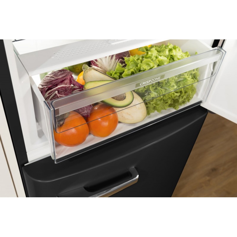 Зона Convert FreshZone дозволяє змінювати температуру в окремому відсіку, адаптуючи його для зберігання м’яса, риби або овочів. Велика шухляда CrispZone ідеально підходить для овочів та фруктів, зберігаючи їх свіжими та хрусткими. LED-освітлення забезпечує яскраве та енергоефективне підсвічування внутрішнього простору.