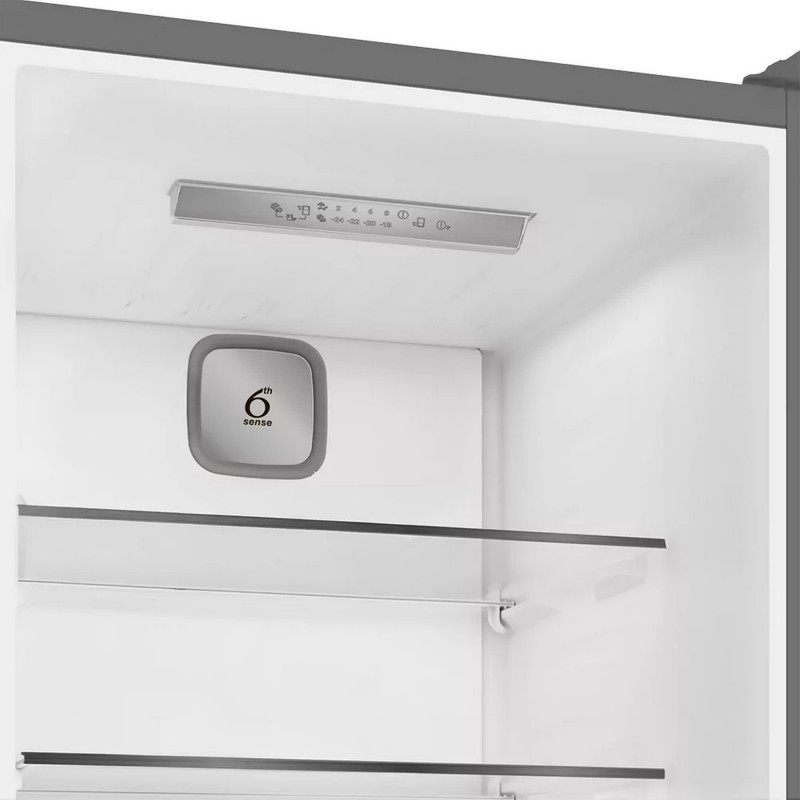 LED-дисплей забезпечує легкий контроль температури та режимів. Реалізовано набір корисних функцій: «Режим еко», «Режим відпустка», швидке замороження, захист від дітей, а також сигналізація відкритих дверей і підвищення температури. Дверцята можна перевішувати для зручного розміщення пристрою.