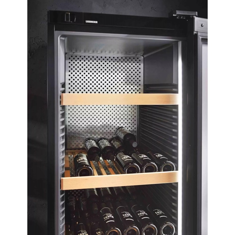 Якщо зберігати вино за неправильної температури, воно може зіпсуватися й втратити свої якості. Точна електронна система контролю постійно підтримує необхідну температуру в кліматичній винній шафі Liebherr. Температуру можна встановити в діапазоні від +5 до +20 °C. Поточний показник відображається на дисплеї.