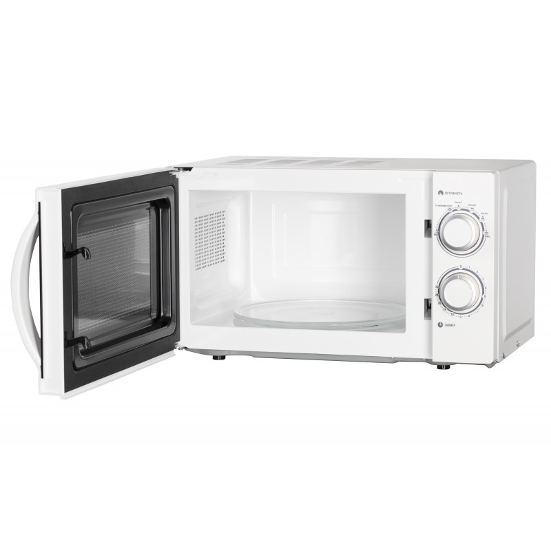 Ця мікрохвильова піч білого кольору вдало пасуватиме на кожній сучасній кухні. Завдяки потужності 700 Вт і внутрішньому об’єму, що становить 20 л, можна швидко розігріти їжу для всієї родини. Потужність можна регулювати – є 6 рівнів. Тип керування цією мікрохвильовкою зручний – механічний. Діаметр поворотного диска – 245 мм, чого достатньо навіть для об’ємного посуду. Бокове відкривання дверцят GO-S721W створює додаткову зручність під час користування. Пристрій економний щодо електроспоживання.