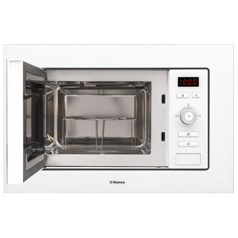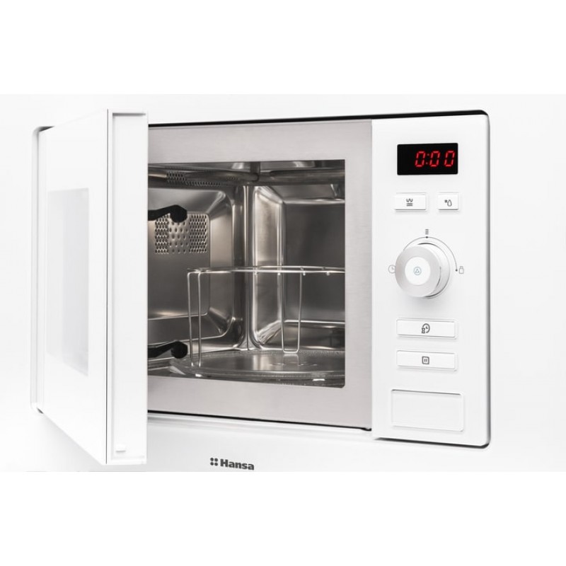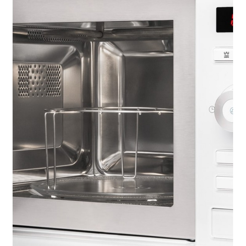 Ця мікрохвильова піч оснащена електронним управлінням і дисплеєм, що дозволяє легко налаштовувати режими приготування. Кнопкова система відкривання дверцят забезпечує зручність у використанні, а внутрішнє підсвічування дозволяє контролювати процес приготування. Білий колір корпусу додає елегантності і робить цю мікрохвильову піч стильним доповненням до будь-якої кухні