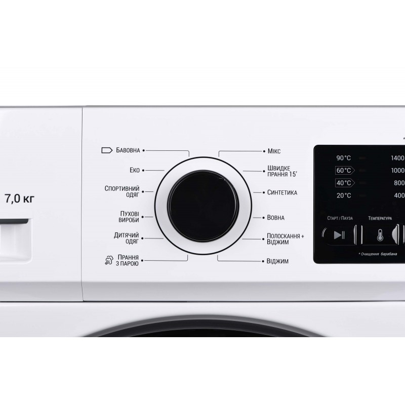 ARDESTO WMS-7117IWBD впевнено тримає марку щодо якості прання, маючи чималий перелік програм, які роблять його максимально комфортним: прання парою, бавовна, еко, спорт, спідня білизна, вовна, пухо-пір’яні вироби, віджим, полоскання і віджим, експрес 15´, делікатне прання, синтетика, мікс. Режим «прання з парою» підходить для дитячого одягу – надає білизні м’якості та знищує бактерії й алергени. Передбачено відкладене прання, що дає змогу прати у зручний час, наприклад, уночі, коли тариф на електроенергію вигідніший. Завдяки опції підсвічування барабана завантаження та вивантаження білизни будуть під повним контролем користувача. Реалізовано функцію очищення барабана – внутрішня його частина легко очищується без використання мийних засобів. Також є блокування керування – якщо у родині діти, вони не зможуть відкрити дверцята чи змінити параметри прання.