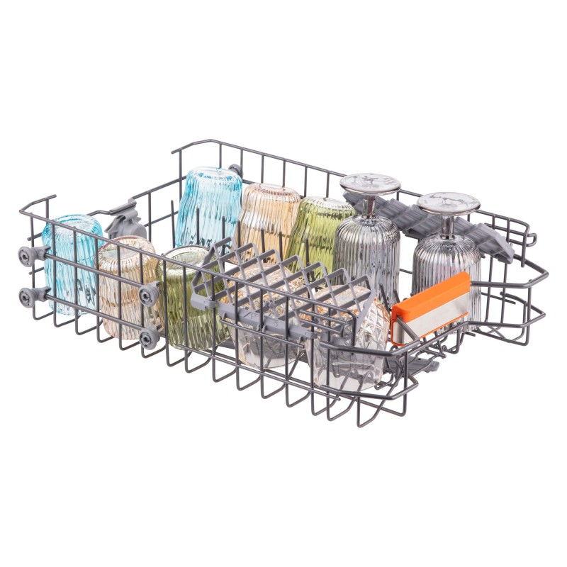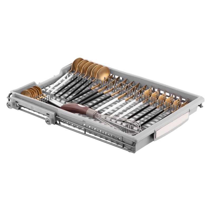 Завантаження та вивантаження ще ніколи не були такими швидкими та зручними: система з 3-ім кошиком, регульований верхній кошик, 2 полиці для кухлів, цілісні розкладні полиці у верхньому та нижньому кошику, універсальний знімний кошик для столових приборів забезпечують неабияку зручність.
